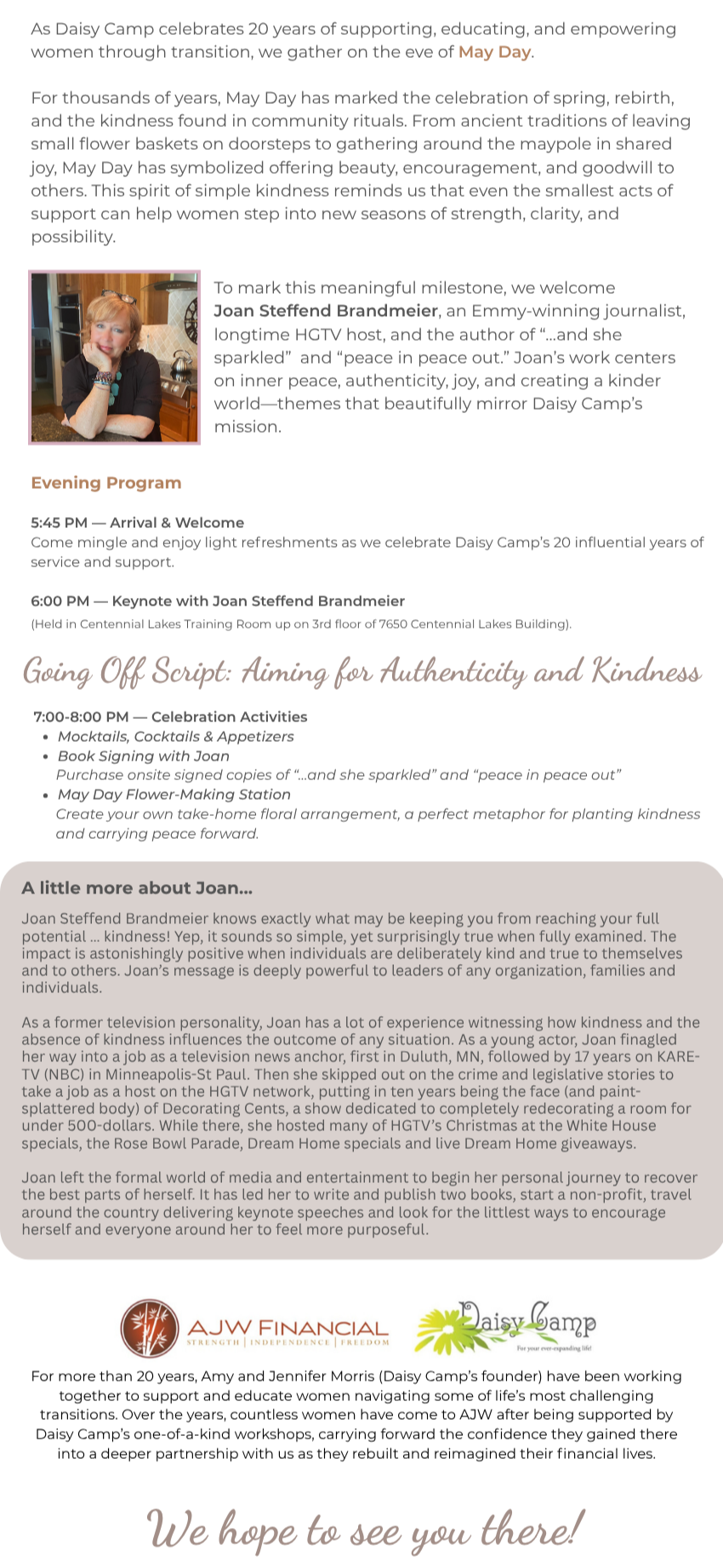 Joan Steffend Brandmeier and Jennifer Morris are not affiliated or registered with Cetera Wealth Services, LLC. Any information provided by these individuals is in no way related to Cetera Wealth Services, LLC or its registered representatives.